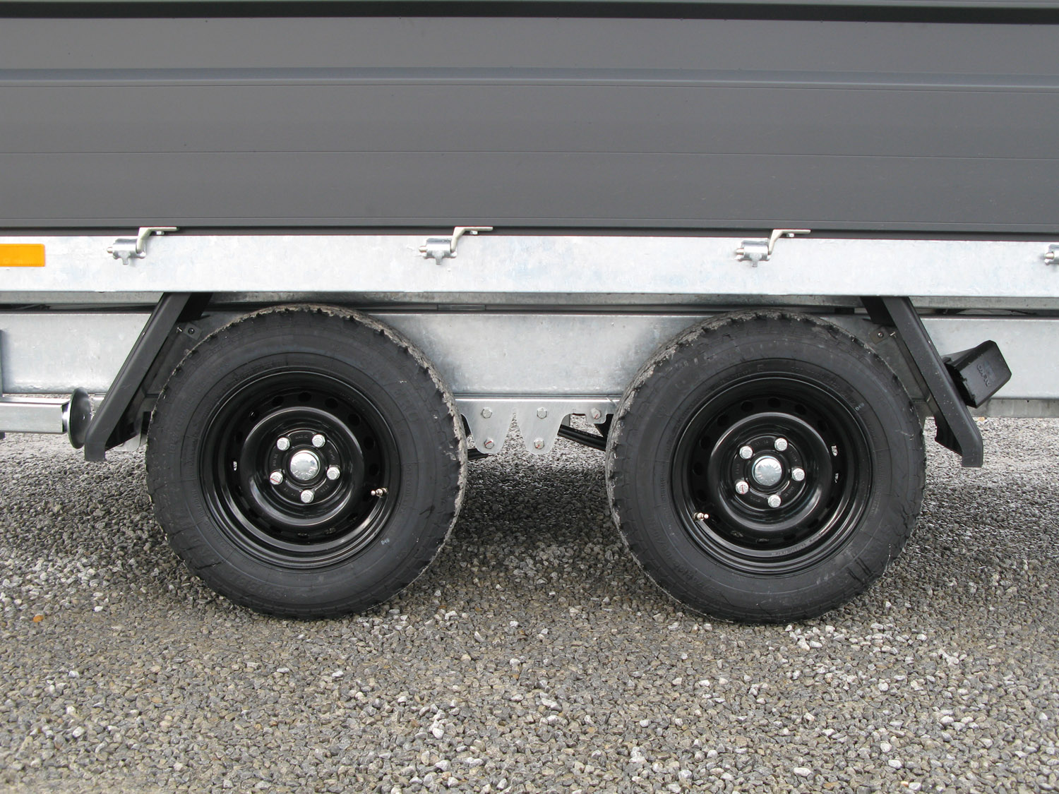 • Bordwände in Aluminium (in anthrazitgrau) 40 cm hoch mit robusten, eingebauten Verschlüssen