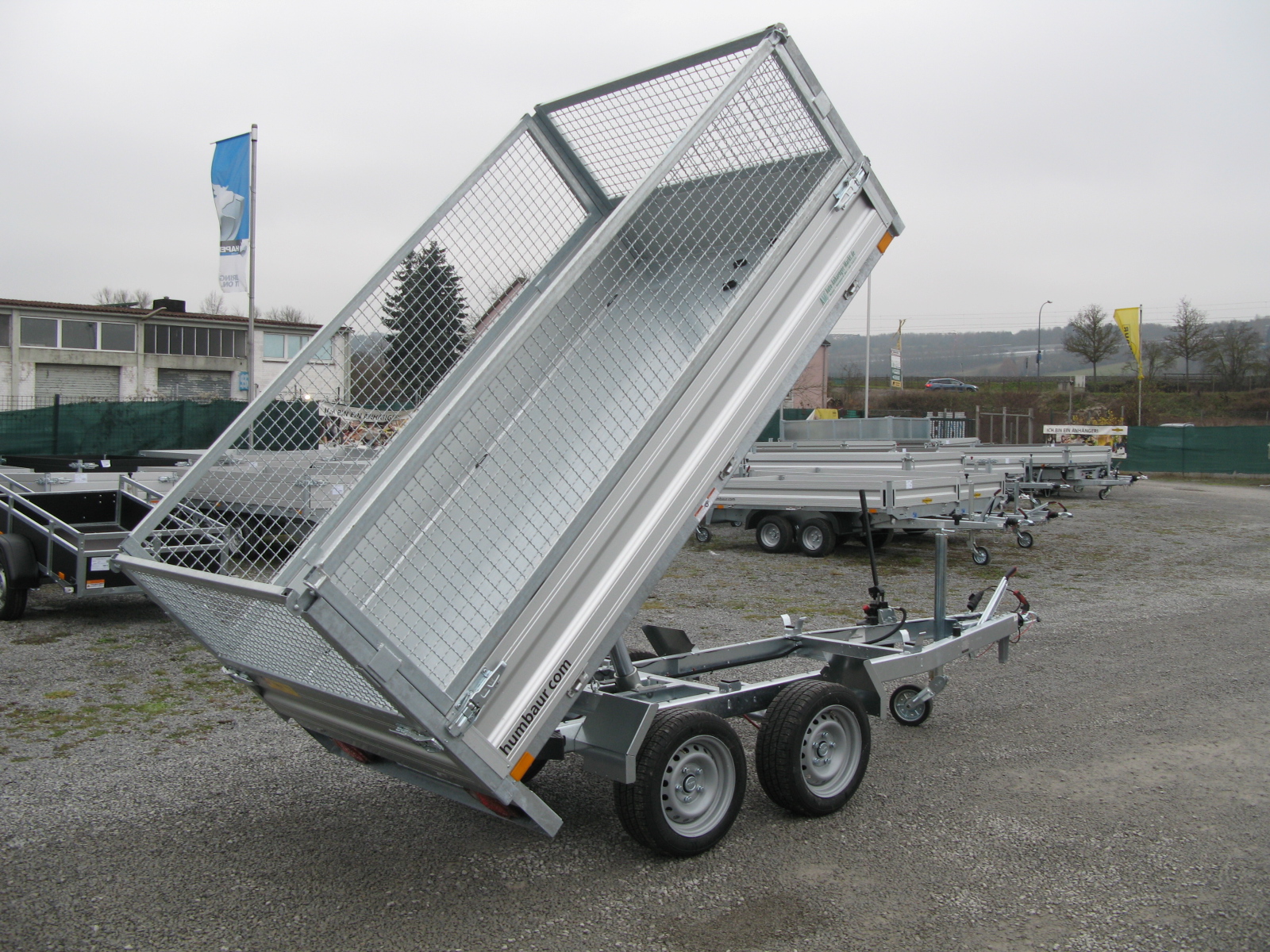 Tandem-Rückwärtskipper von Humbaur, Gitteraufsatz 600mm pendelbar