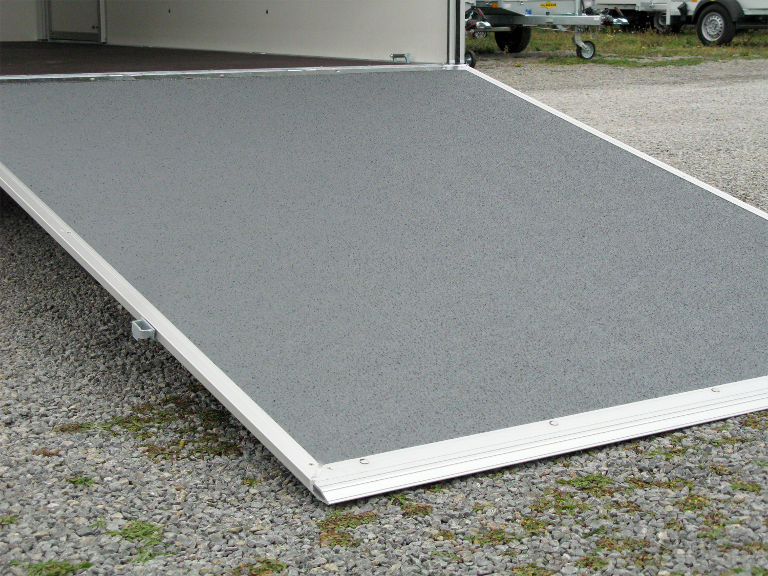 Tieflader-Koffer mit Auffahrklappe rutschhemmend mit Gasdruckfedern