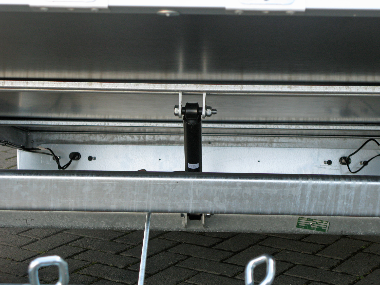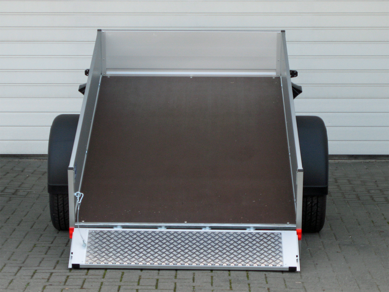 Gartengeräte und Motorräder beispielsweise lassen sich leichter transportieren, wenn der Anhänger kippbar ist. Für diese und ähnliche Verwendungen haben wir den Tieflader HA in dieser Variante mit einem kippbaren Kasten versehen. Ein Stoßdämpfer erleichtert Ihnen das Abkippen. Verstärkungen, wie beispiels- weise zusätzliche Scharniere an der Heckklappe, machen den Anhänger besonders stabil.