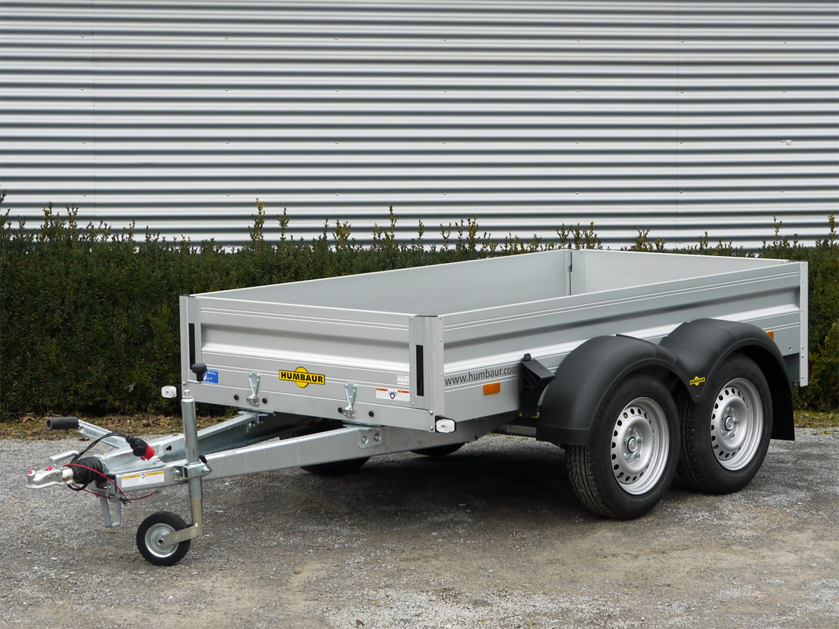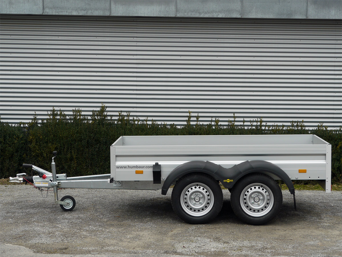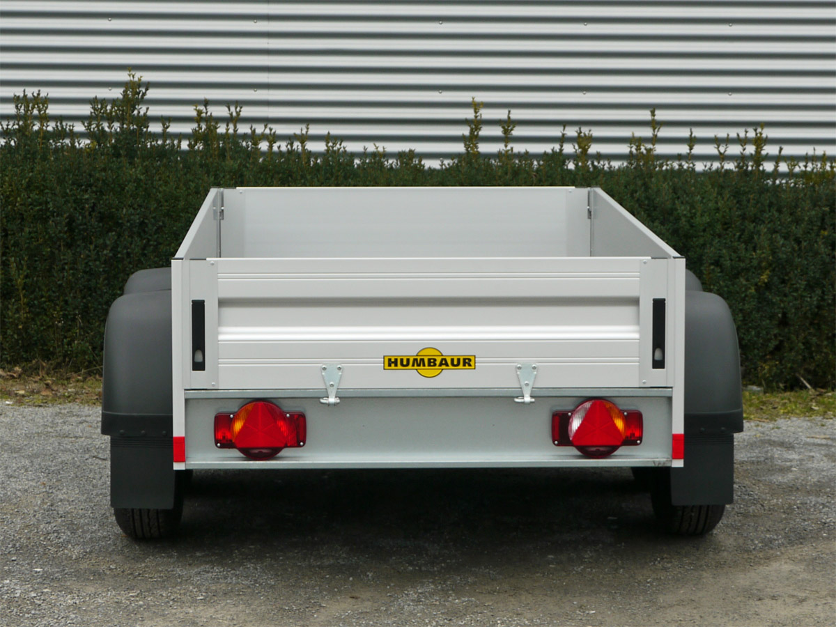 Bereifung 175/70R13 HA-Tieflader der Marke Humbaur sind mit einer einzigartigen Rahmen-/Bordwandkonstruktion aus stabilem und eloxiertem Aluminium aufgebaut.