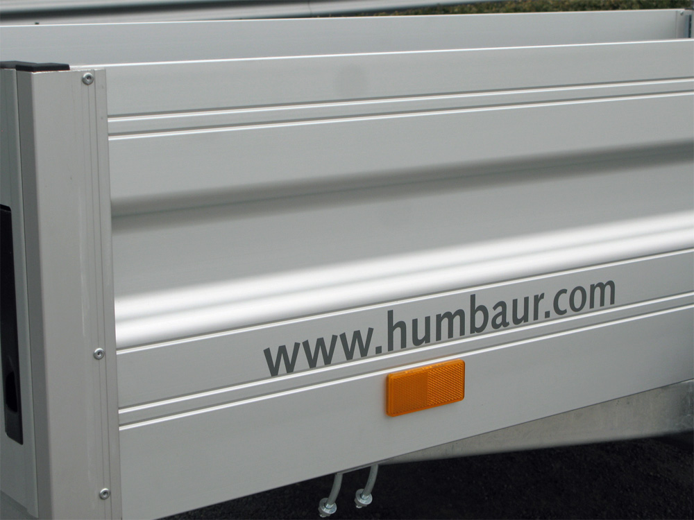 HA-Tieflader der Marke Humbaur sind mit einer einzigartigen Rahmen-/Bordwandkonstruktion aus stabilem und eloxiertem Aluminium aufgebaut.