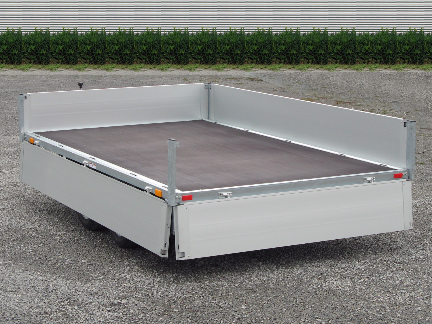 • abnehmbare Bordwände aus eloxiertem doppelwandigem Aluminiumprofil