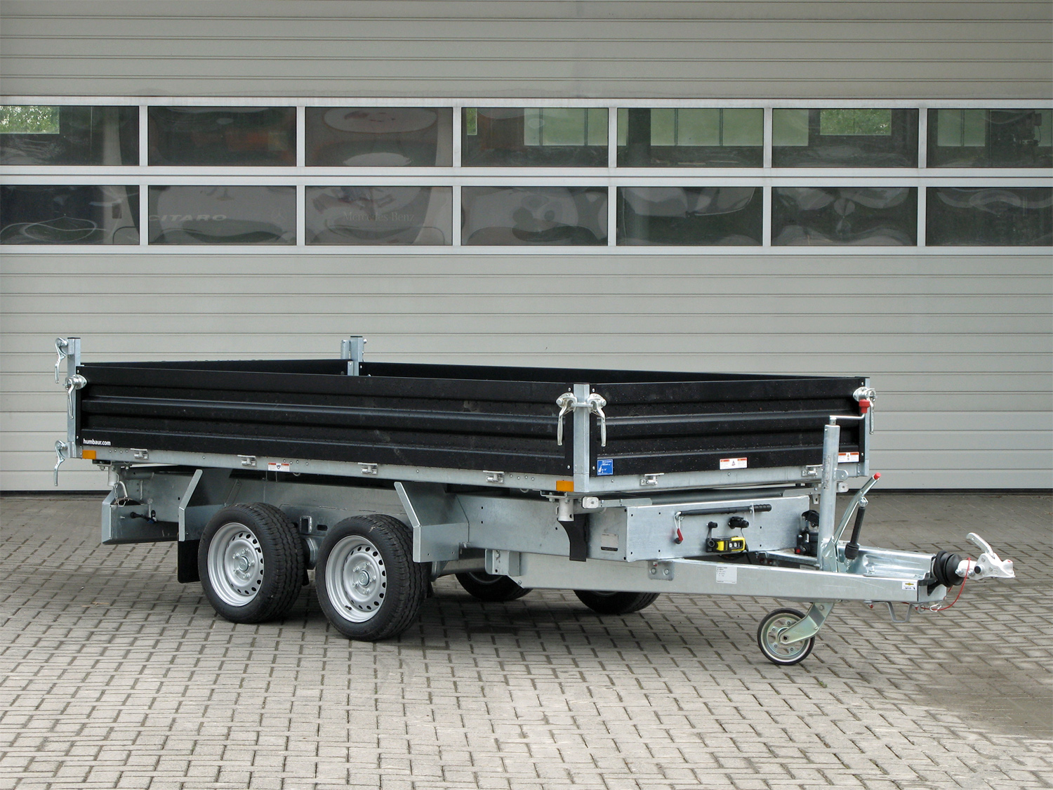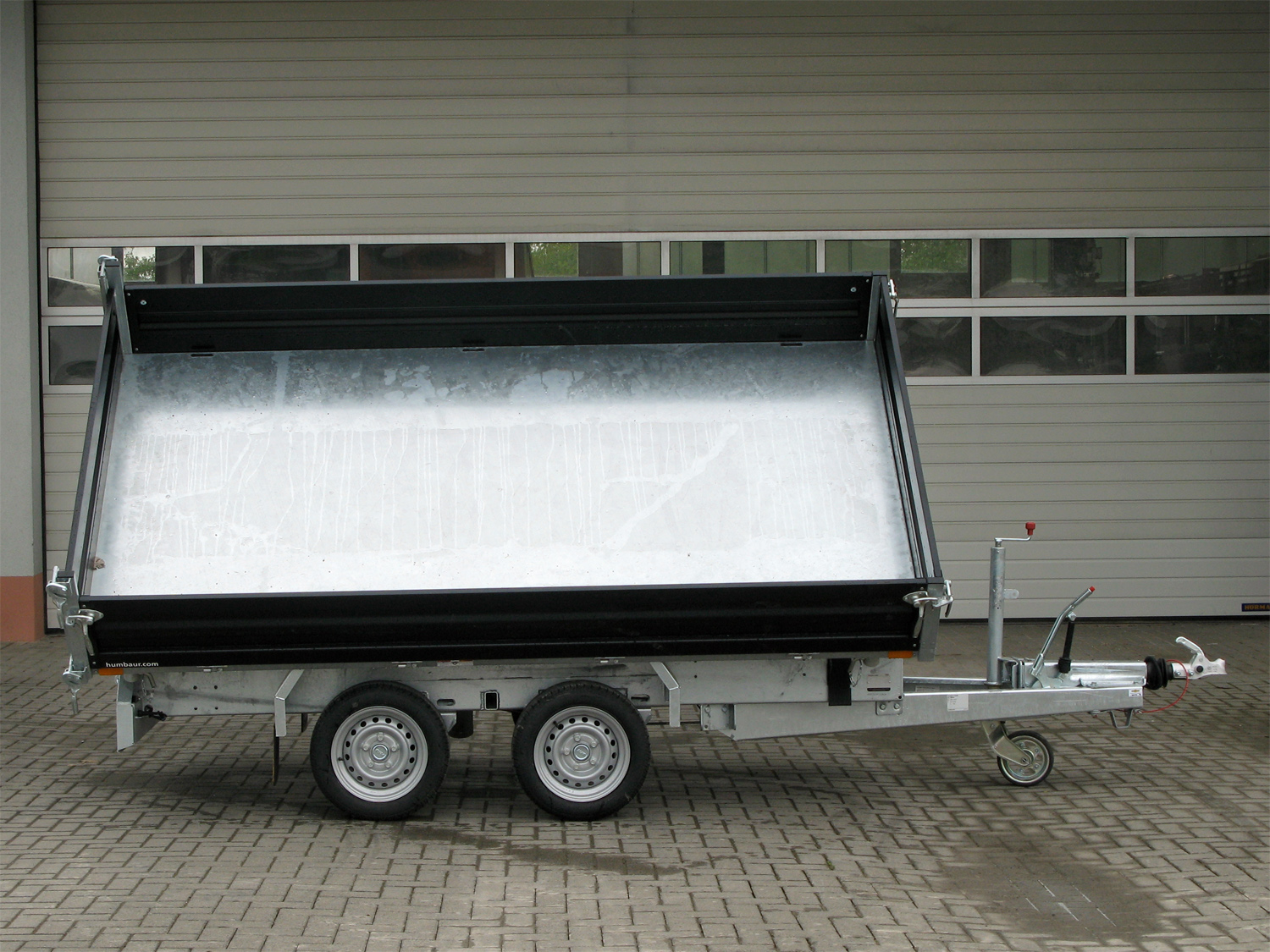 • Dreiseitenkipper mit Stahl Bordwand schwarz Fahrwerk, der Rahmen und die Kippbrücke tauchbad... mehr