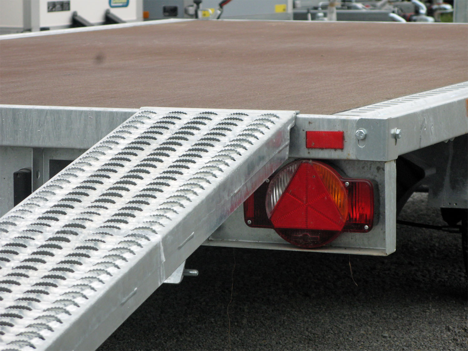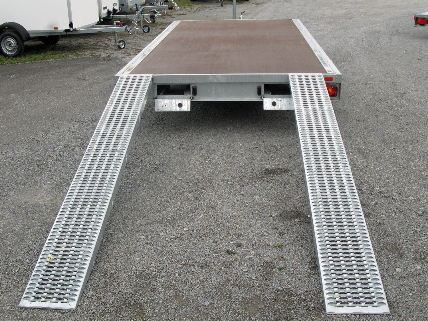 - 2 tauchbad feuerverzinkte Auffahrbohlen aus Gitterrost unter der Ladefläche eingeschoben