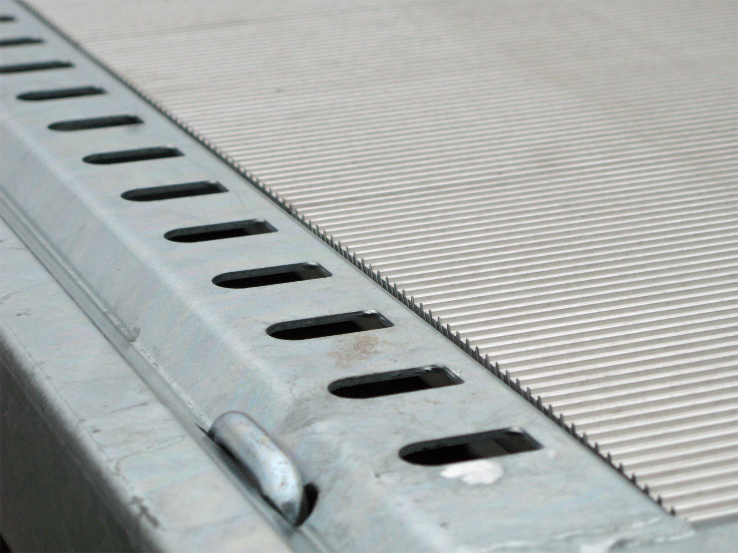 - 2 tauchbad feuerverzinkte Auffahrbohlen aus Gitterrost unter der Ladefläche eingeschoben