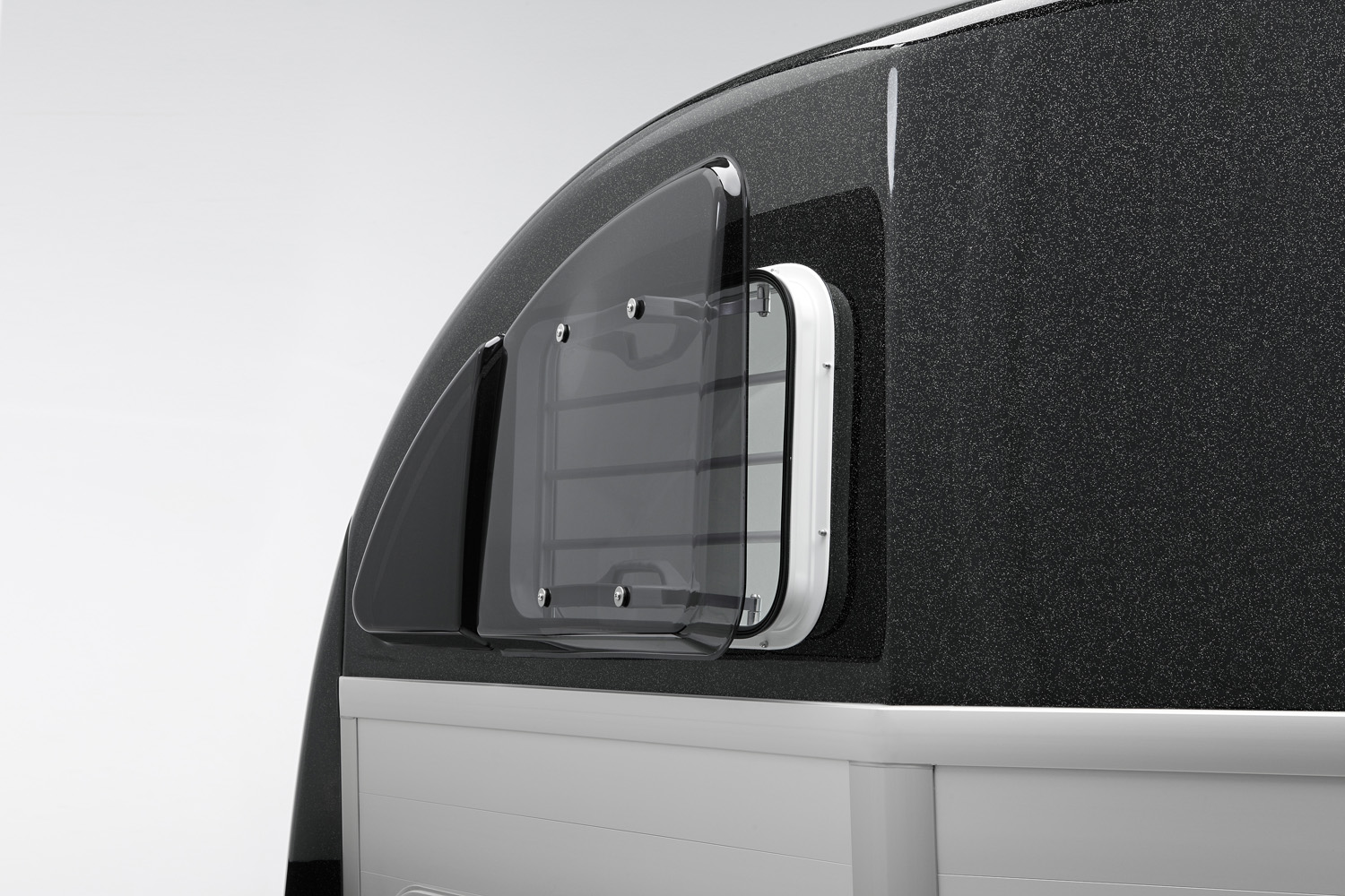 Der AERO-Bug bringt dem Xanthos® ein eleganteres Aussehen und Ihnen gleich drei handfeste Vorteile: Der geringere Luftwiderstand senkt die Windgeräusche. Er vermindert den Kraftstoffverbrauch. Und er vergrößert den Stauraum in der Sattelkammer um ca. 20 %. Auch das neue getönte Ausstellfenster haben wir aerodynamisch verbessert. Es ist für eine individuelle Belüftung fünffach verstellbar. Damit im AERO immer ausreichend zugfreie Frischluft zur Verfügung steht, statten wir auch ihn mit dem bewährten Humbaur Windschott aus. Auf Wunsch rüsten wir jeden Xanthos® AERO für sie mit zusätzlichen Lüftungsmöglichkeiten und Dachfenster aus.
