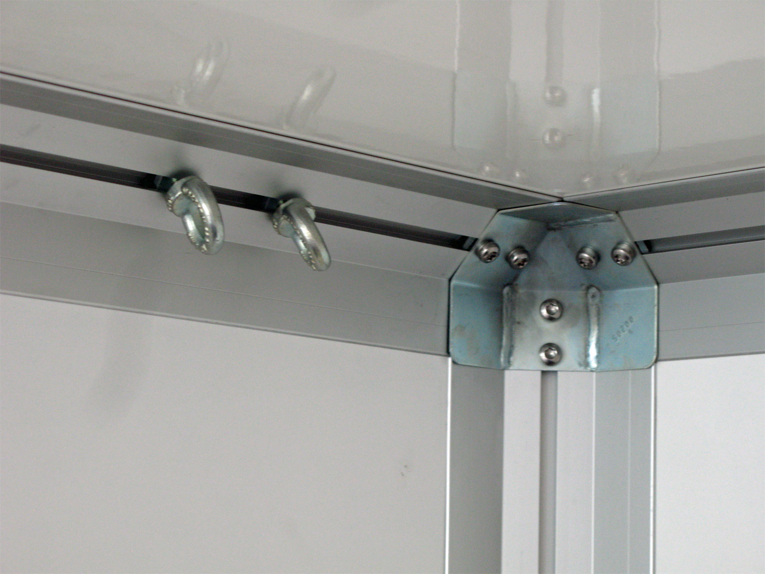 Schon in der Standardausführung ist von jeder Stelle aus eine diagonale Abspannung vom Boden bis zur Decke möglich. Auf Wunsch gibt es weitere Verzurrlösungen, die mit flexibel arretierbaren Stangen arbeiten und allerhöchste Ansprüche an die Ladungssicherung erfüllen.