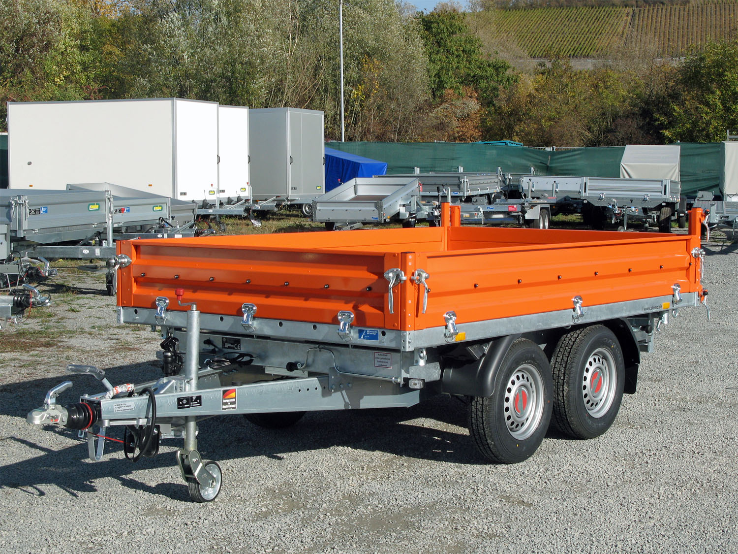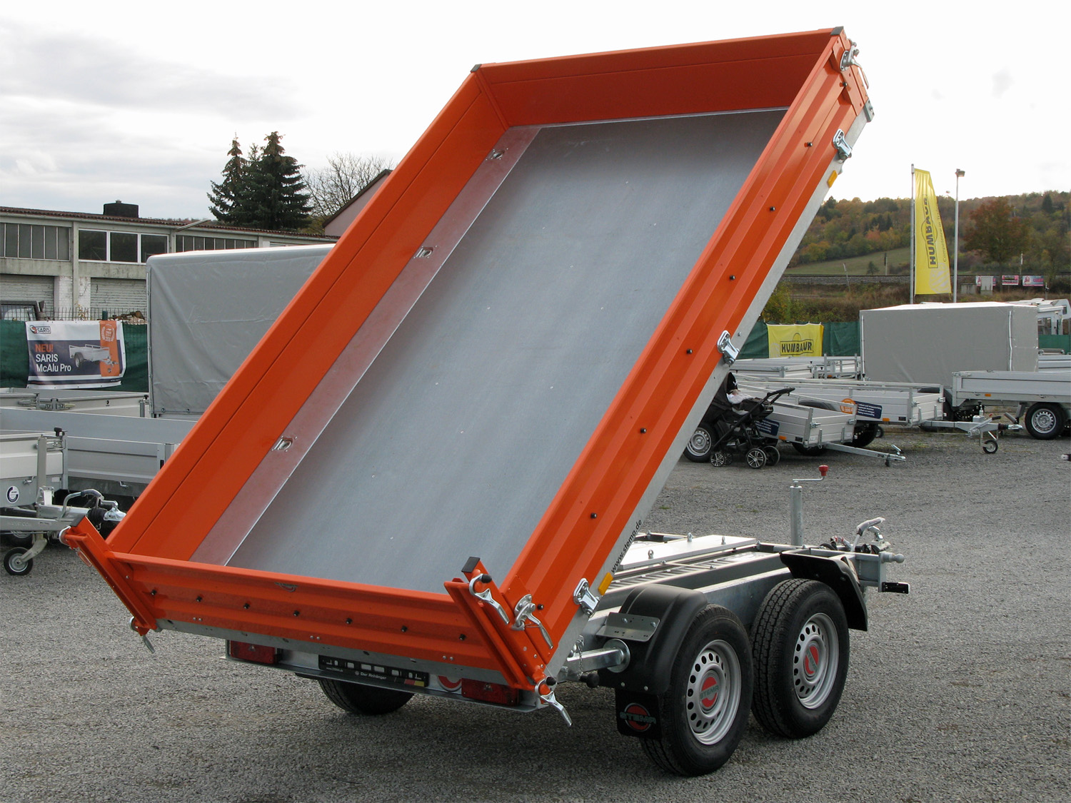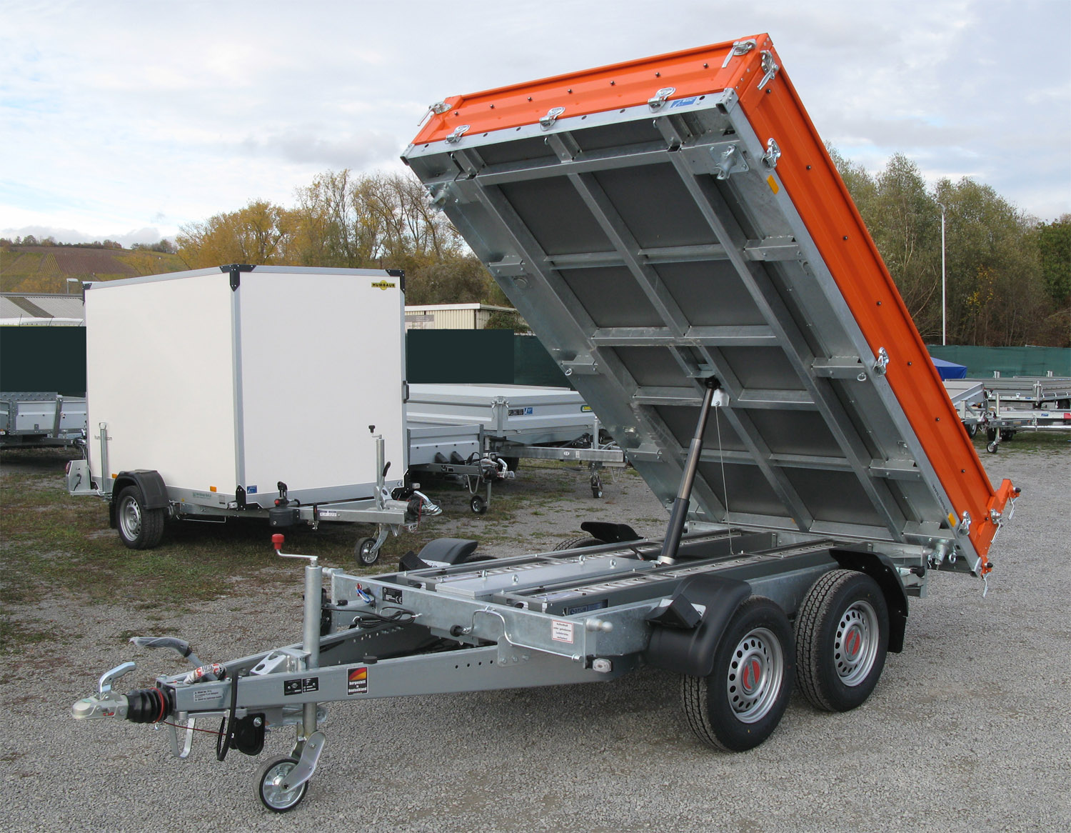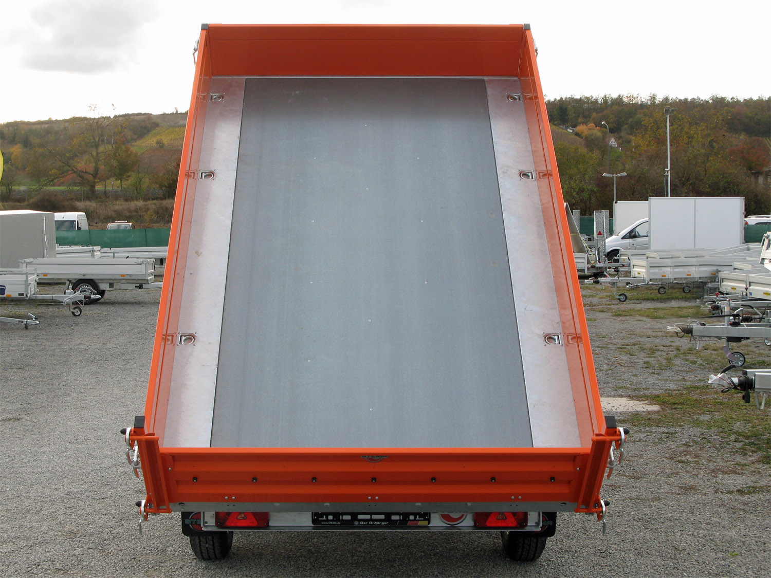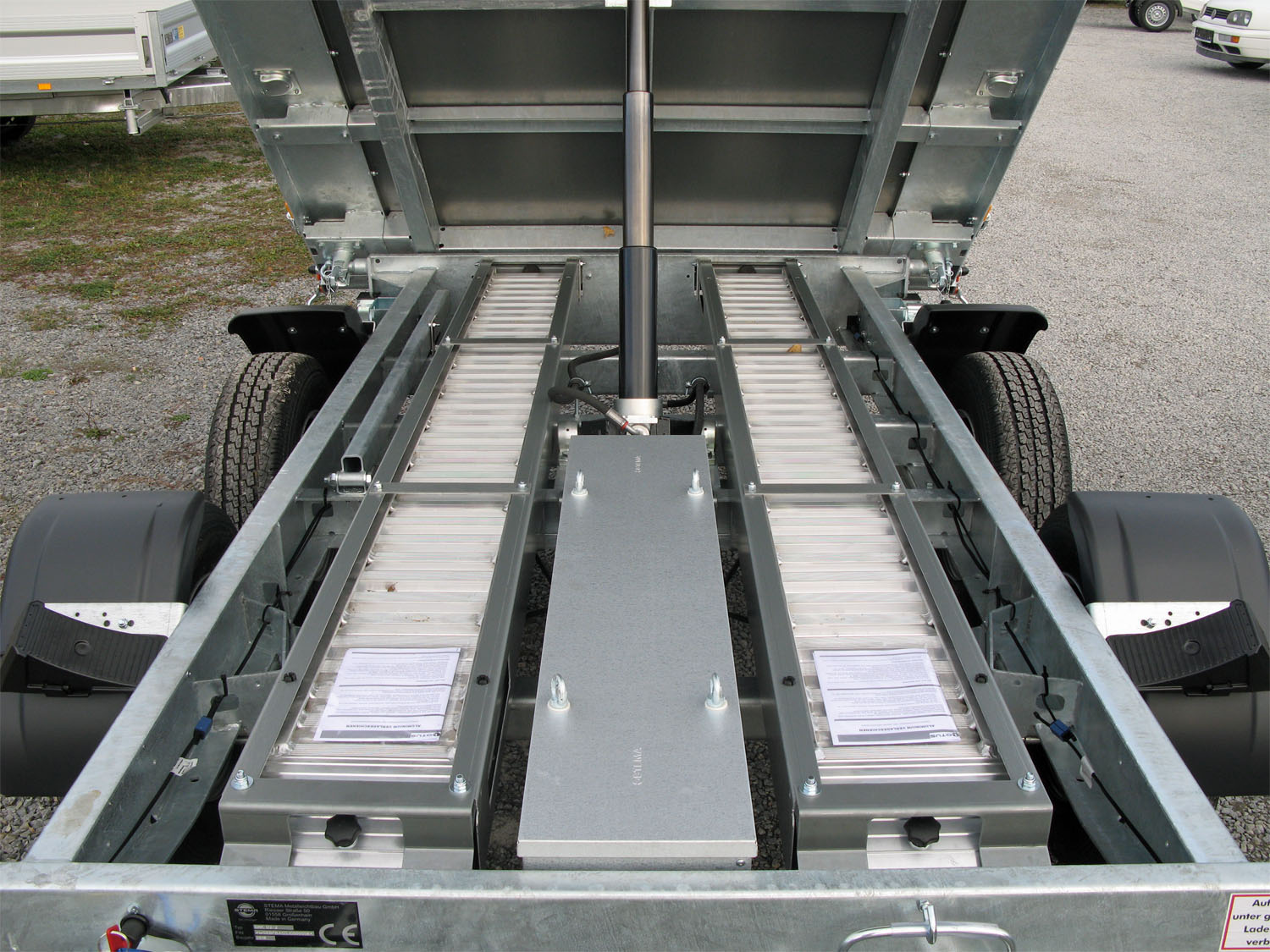 - Grundrahmen (Fahrgestell) und Kippbrücke aus massiven Stahlprofilen geschweißt und im Tauchbad feuerverzinkt