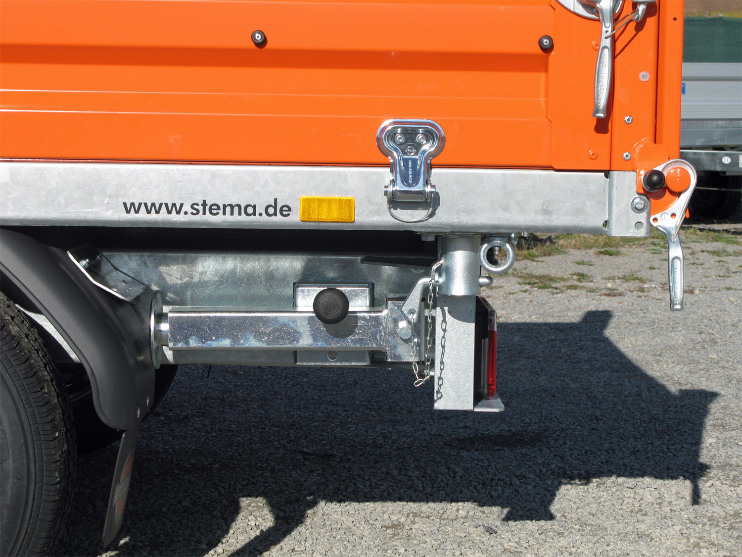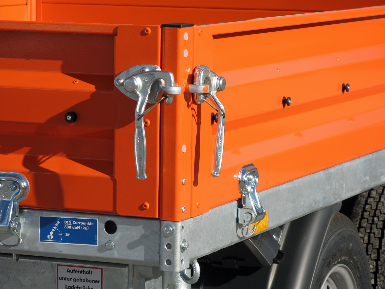 - Bordwände aus Stahl 2 mm mit robusten Winkelhebelverschluss