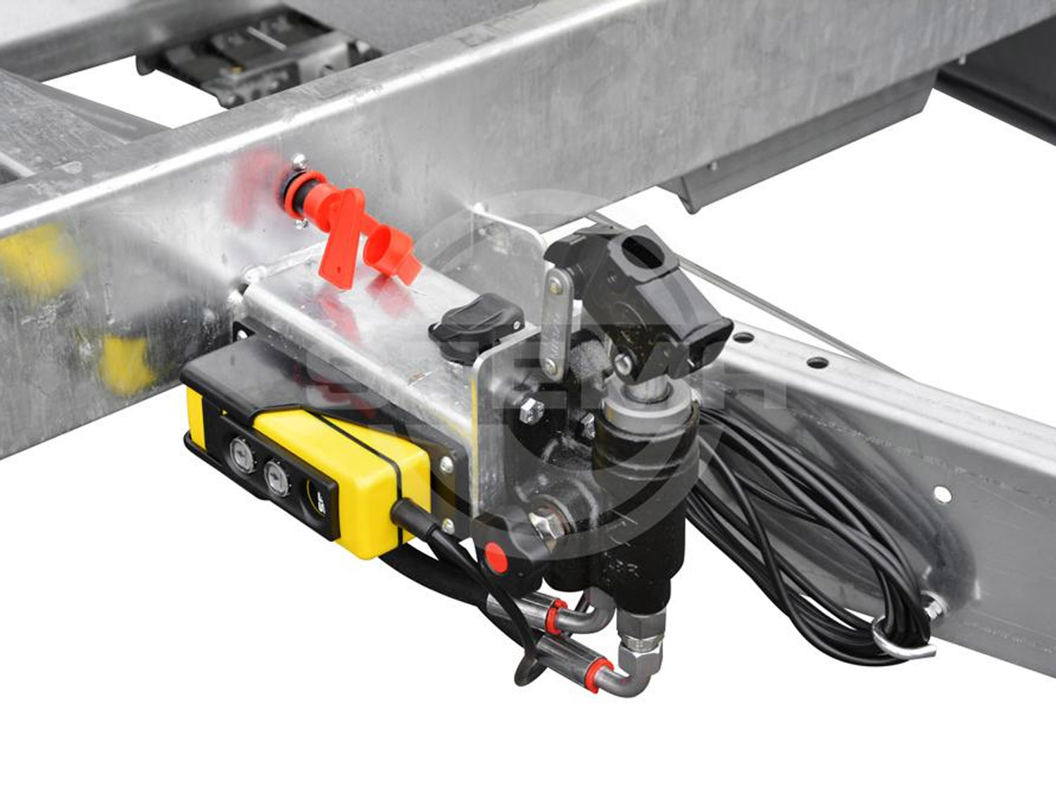 • Grundrahmen (Fahrgestell) und Kippbrücke aus massiven Stahlprofilen geschweißt und im - Tauchbad feuerverzinkt