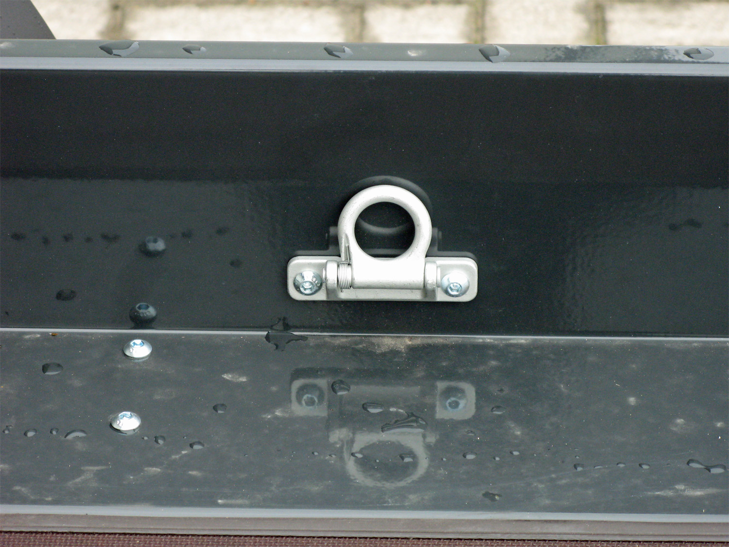 • Aufbau 3-seitig aus stabilem Stahlprofil verzinkt und pulverbeschichtet in schwarzgrau (RAL 7021) - 100 km/h Ausführung