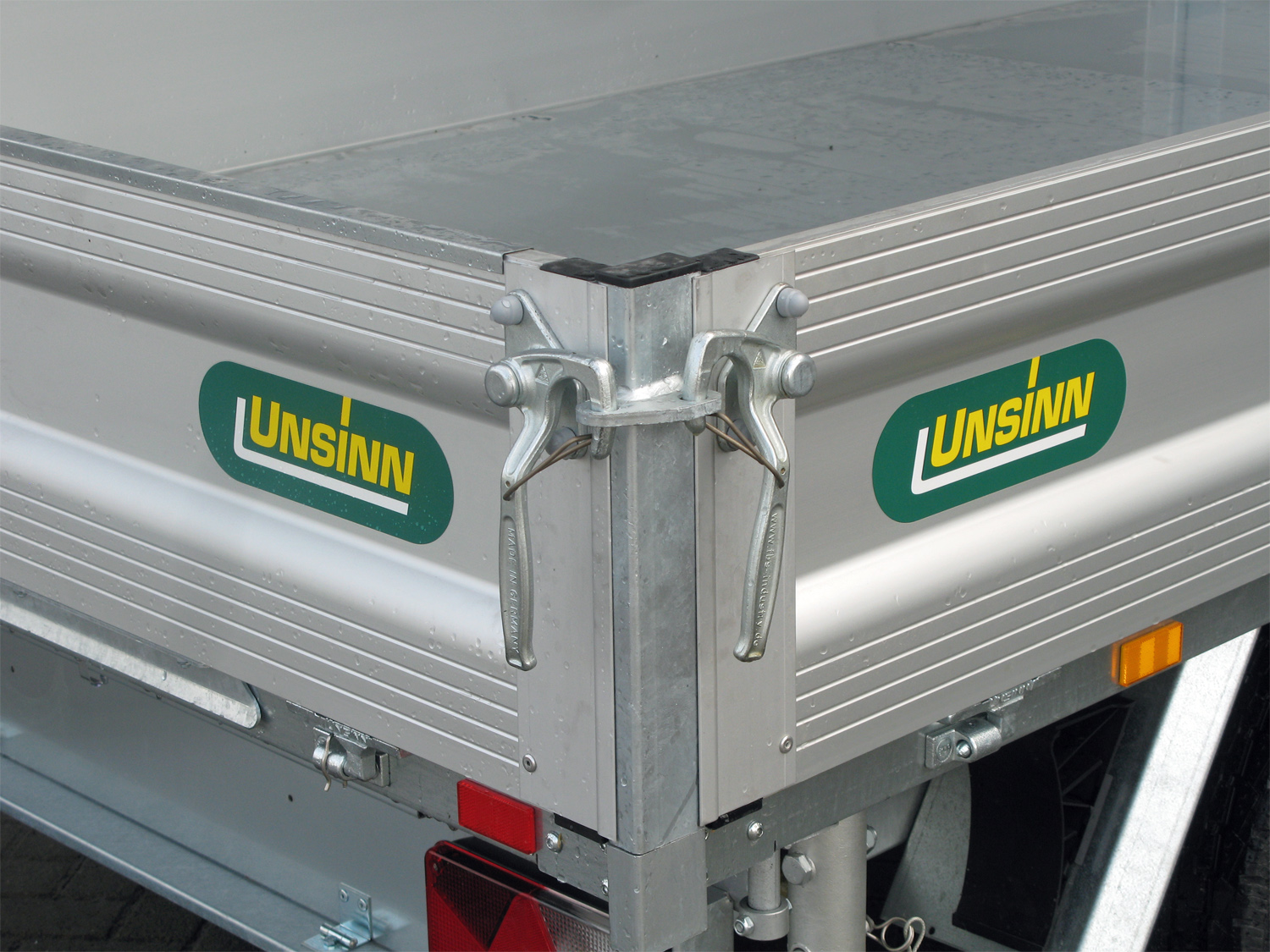 Bordwände:- Aluminium-Hohlprofil, eloxiert, vierseitig abklappbar, abnehmbar mit Hakenverschlüssen