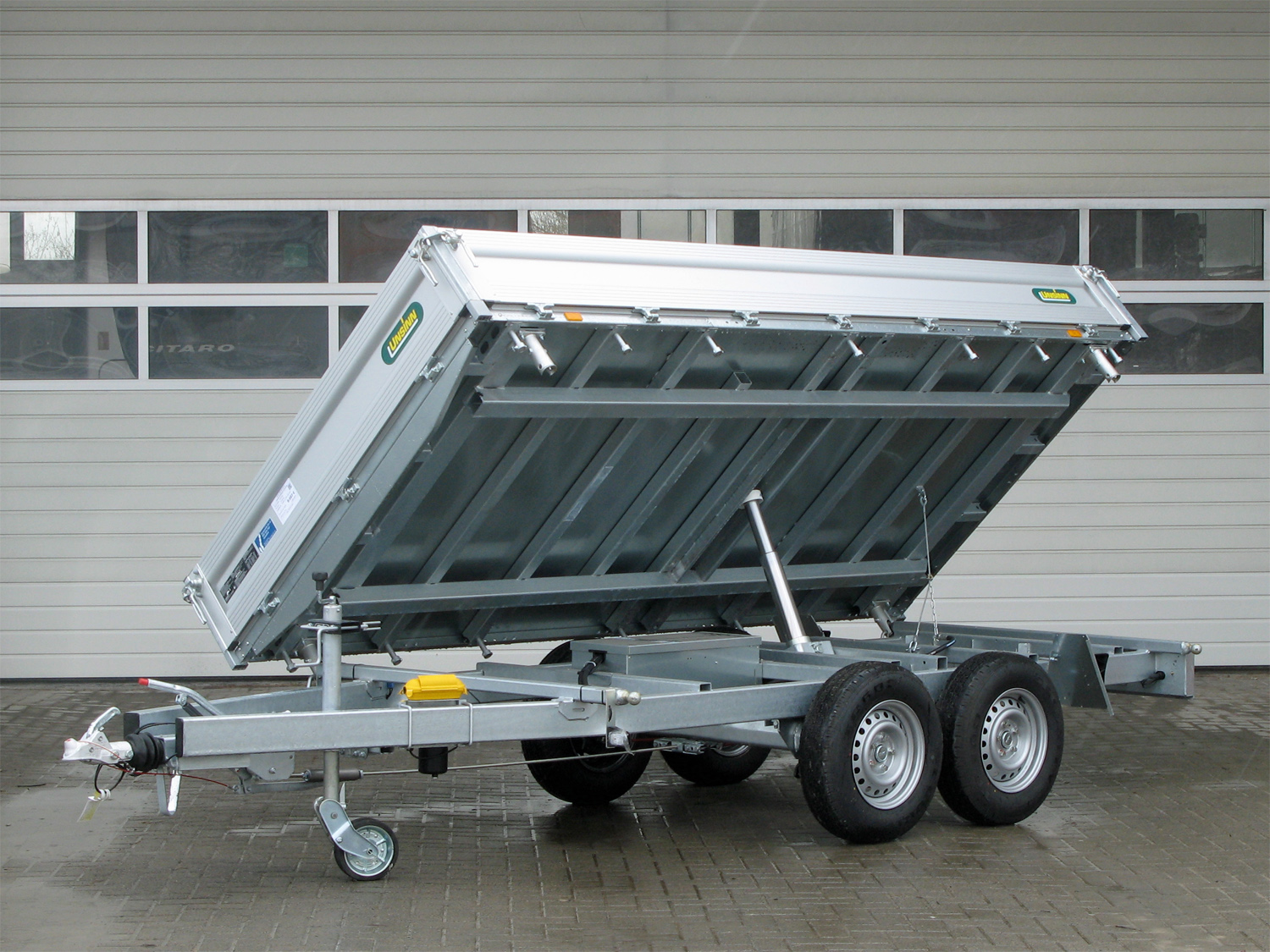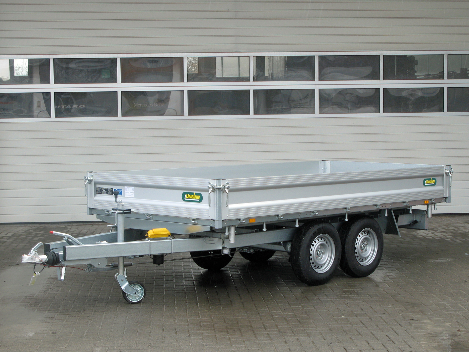 Aktionsmodell 13 Zoll Fahrwerk, Stahlboden , Hakenverschlüsse Hydraulik: E Hydraulik mit Batterie und Ladegerät, Notpumpe Pumpless für Akkuschrauber Klappbarer Kennzeichenhalter für Verstauen der Auffahrschienen unter der Lagefläche Beleuchtung mit 13 pol. Stecker und Rückfahrscheinwerfer Rahmen: