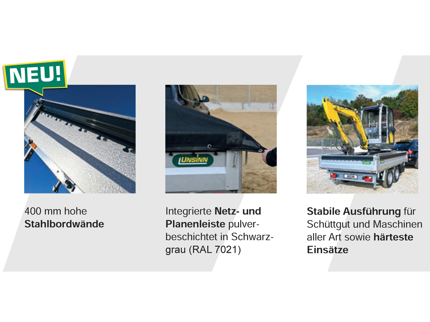 Neues Modell mit 400 mm Bordwänden und Netz- und Planenleiste
