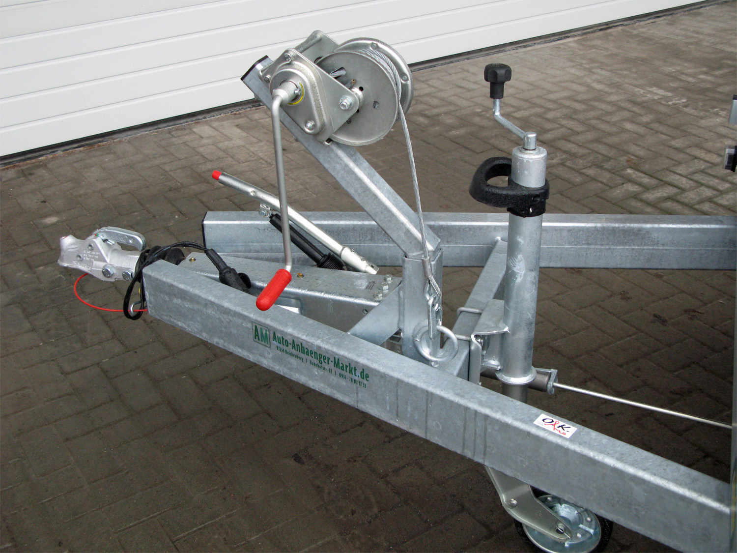 - Verstärktes, automatisches Stützrad, für sicheres Abstellen des beladenen Anhängers, Tragkraft 500kg