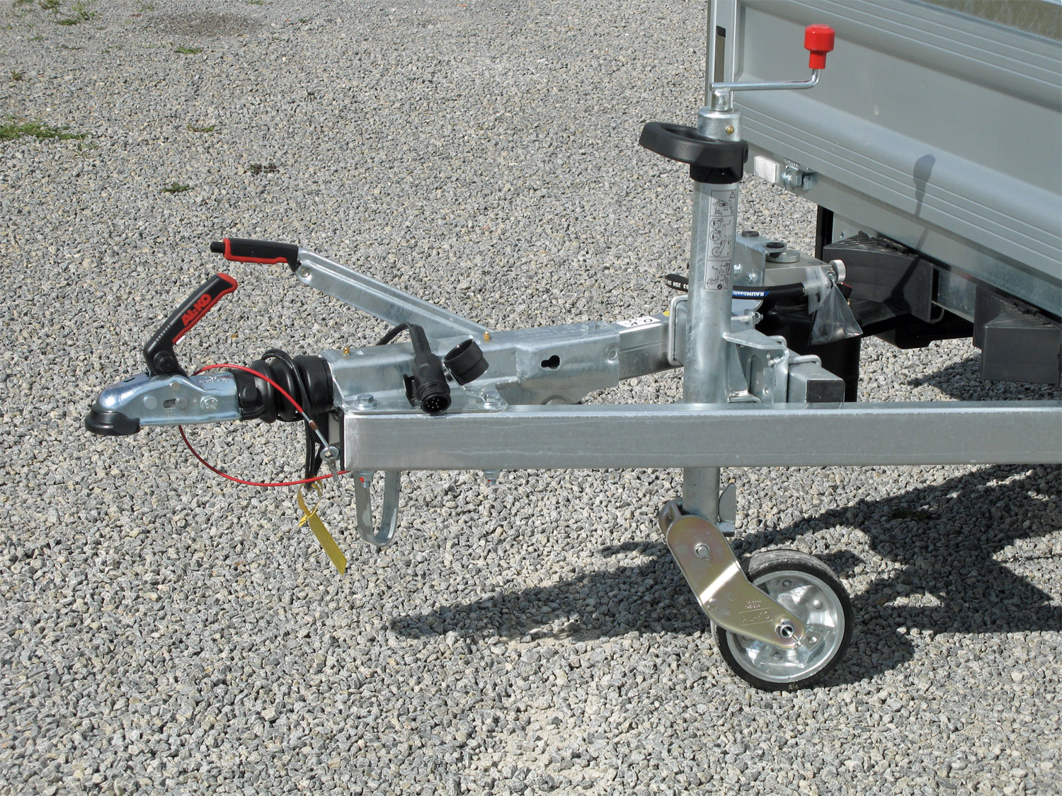 - Verstärktes, automatisches Stützrad, für sicheres Abstellen des beladenen Anhängers, Tragkraft 500 kg