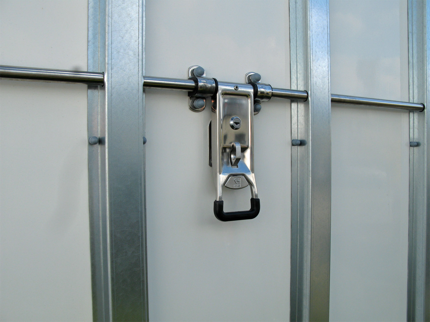 • Auffahrklappe mit Gasfederhubhilfe mit querliegendem Drehstangenverschluss und rutschhemmenden Kunststoffbodenbelag