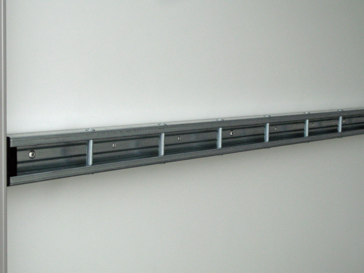 Schlitzankerschienen an der rechten Seitenwand auf Höhe 700 mm & 1200 mm montiert, IL 3660 mm