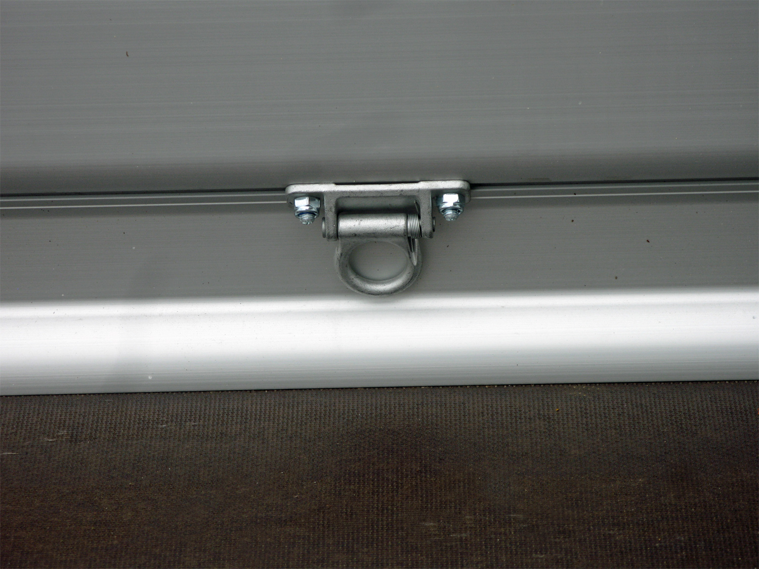 - Aluminium-Hohlprofil, eloxiert, hinten abklappbar, mit versenkten Verschlüssen