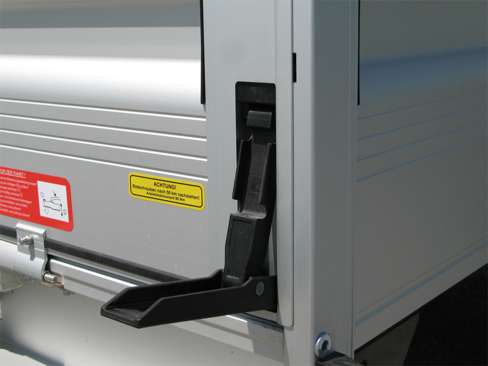 - 4 versenkte, abklappbare Zurrösen in der Seitenwand montiert für sicheres Verzurren der Ladung
