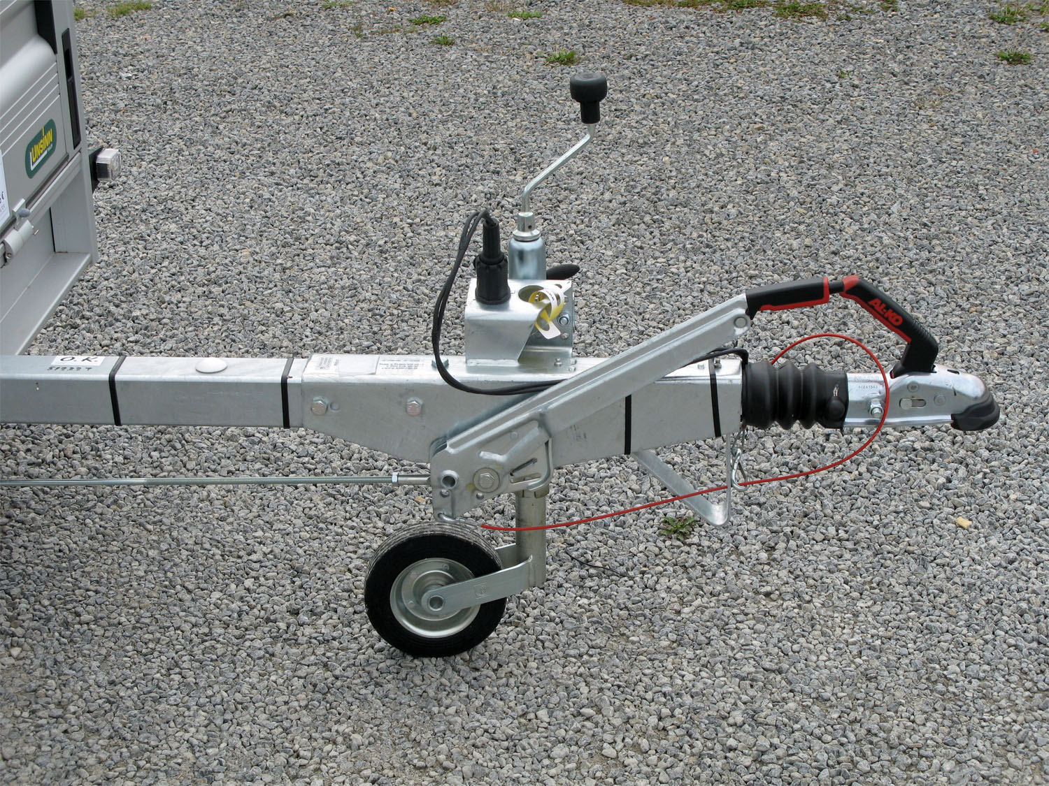 - Deichselstützrad 48 mm montiert, für sicheres Abstellen des beladenen Anhängers