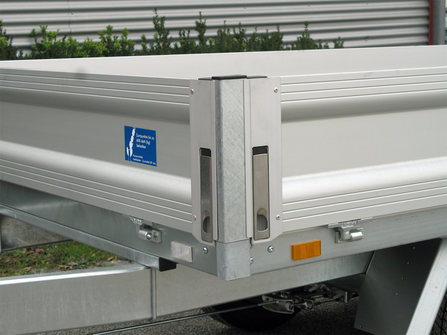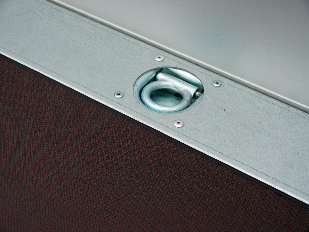 • 6 Zurrmulden klappbar, im Bodenrahmenprofil versenkt montiert